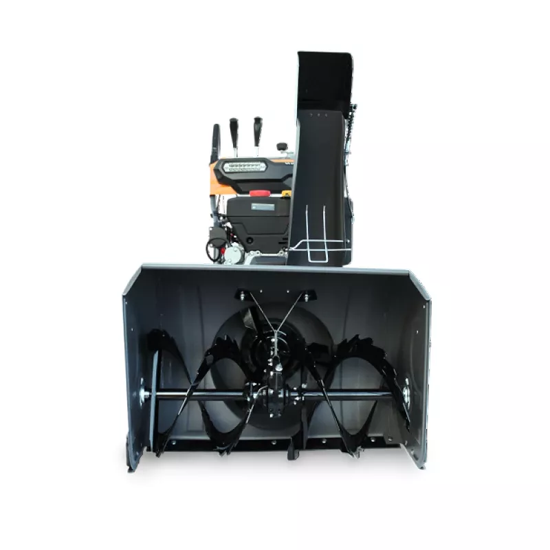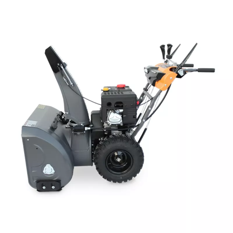 Снегоуборочный ковш изготавливается из стали толщиной 2 мм и усиливается ребрами жесткости. За счет этого выдерживает большие нагрузки. Ширина захвата снега – 76 см, дальность выброса до 15 м. Колеса большого диаметра, изготавливаются из эластичной резины, устойчивой к сильным морозам. Имеет функцию автоматической разблокировки дифференциала, которая повышает маневренность машины.