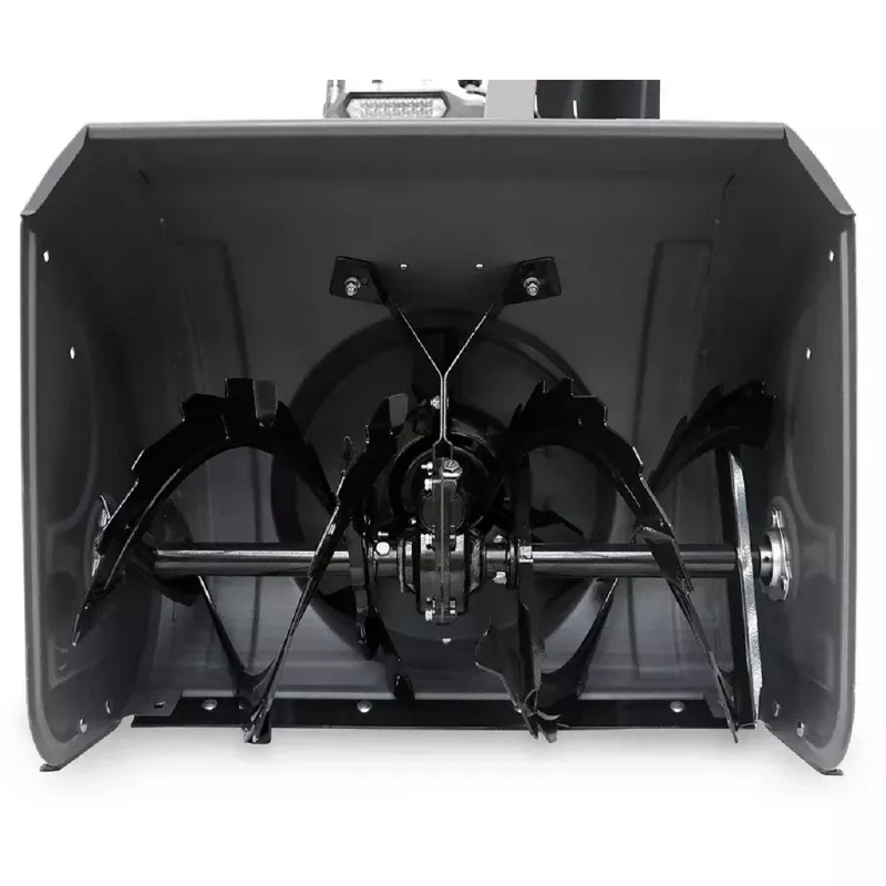 Агрессивный стальной шнек справится с любым снегом и наледью, а срезные болты защитят редуктор от повреждения. Ковш изготовлен из высокопрочной стали толщиной 2 мм усиленный ребрами и покрыт защитным порошковой краской. Большой диаметр импеллера существенно увеличивает производительность снегоуборщика.