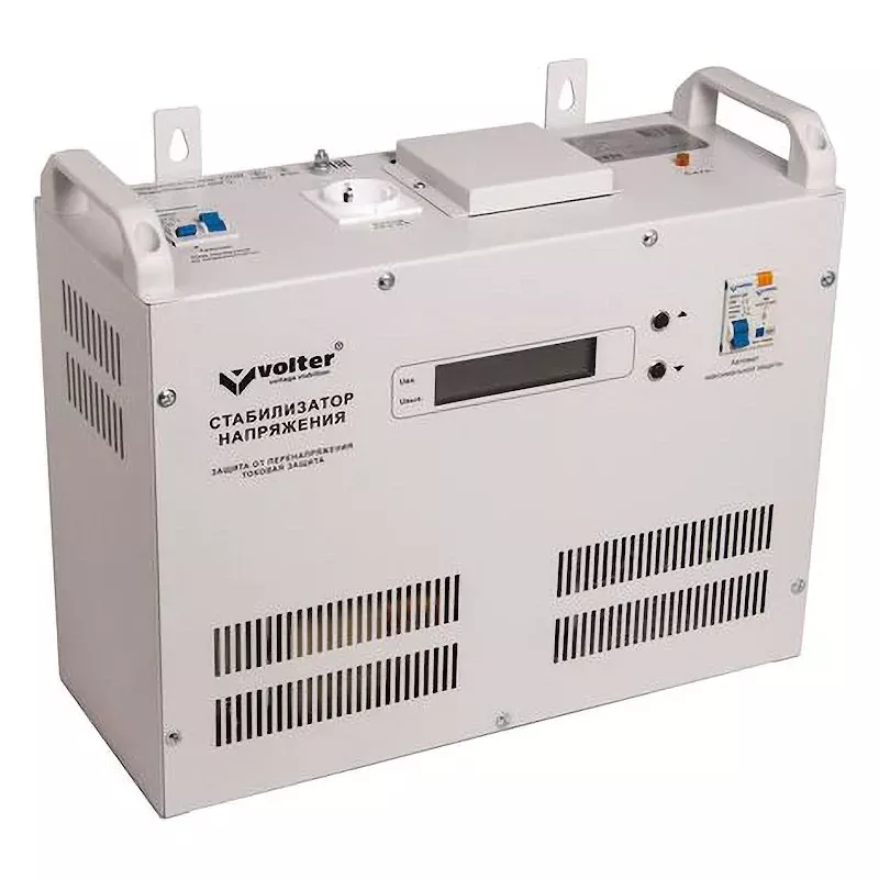 Стабилизатор напряжения Volter СНПТО 5,5 С контролирует значение напряжения как на входе, так и на выходе. Вентиляционные отверстия служат для отвода тепла, чтобы устройство не перегрелось. При необходимости переместить стабилизатор очень просто, используя 2 ручки в верхней части устройства.