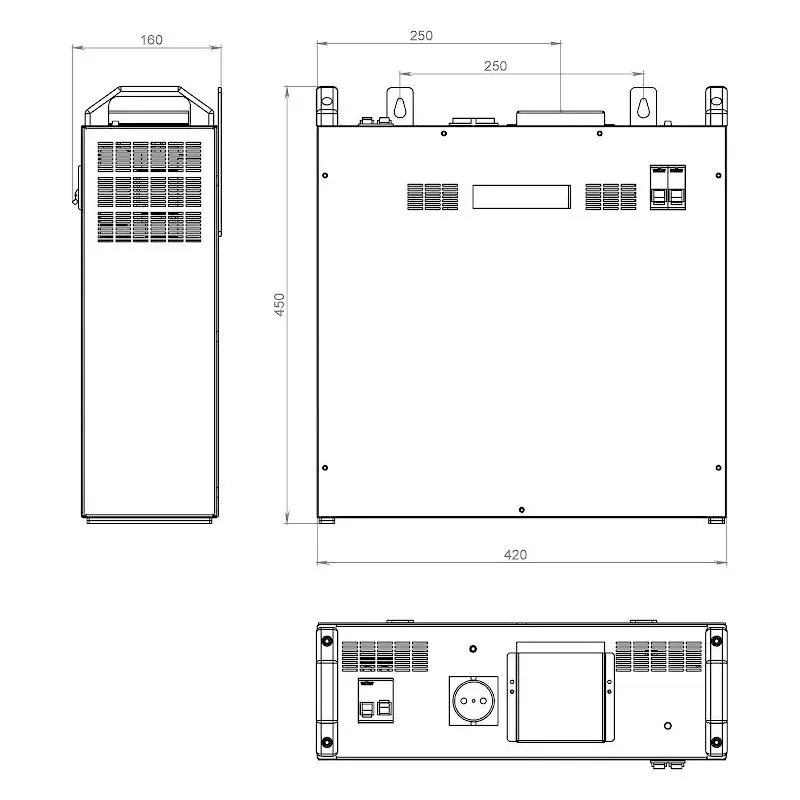 Стабилизатор имеет несколько уровней защиты: от короткого замыкания, перегрузки на выходе, автоматическое отключение в случаи повышенного напряжения, защита от перегрева. Максимальная выходная мощность стабилизатора - 7 кВт, а пределы входного напряжения составляют от 130 В и до 320 В. Допустима ручная настройка выходного напряжения в +-15 В. Масса устройства - 21 кг.