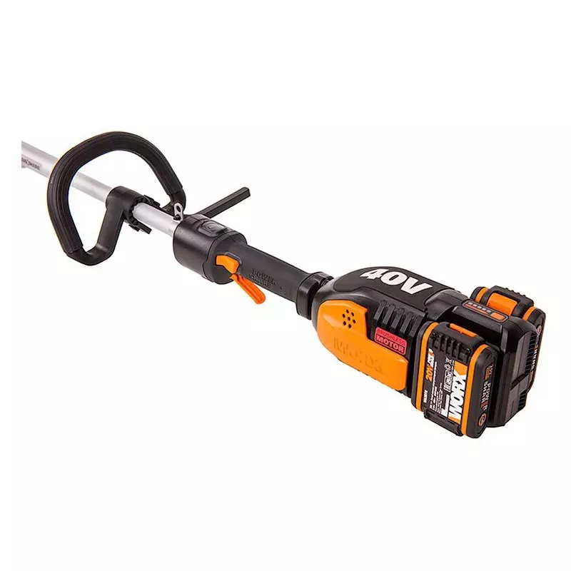 Прочная алюминиевая штанга разбирается для компактного хранения и транспортировки. Триммер поставляется с двумя аккумуляторами емкостью 4 Ач и зарядным устройством. Вы можете использовать их с другим инструментом WORX PowerShare PRO 20V.