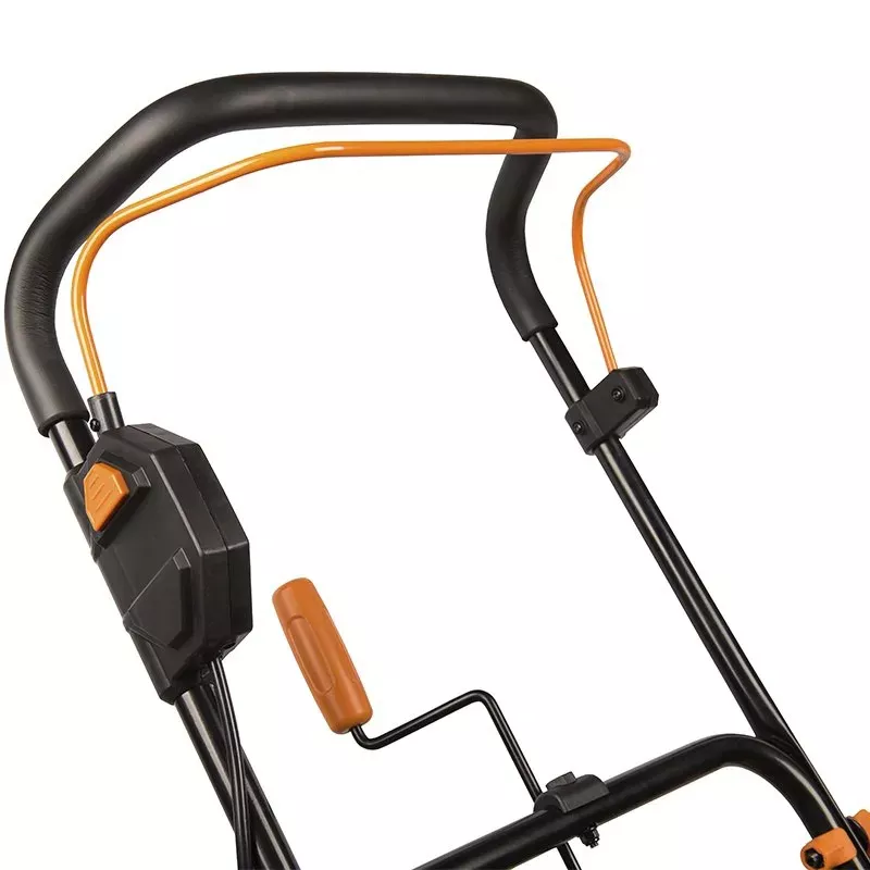 Управление вынесено на рукоятку. Благодаря складной конструкции держателя, снегоочиститель легко помещается в стесненных условиях.