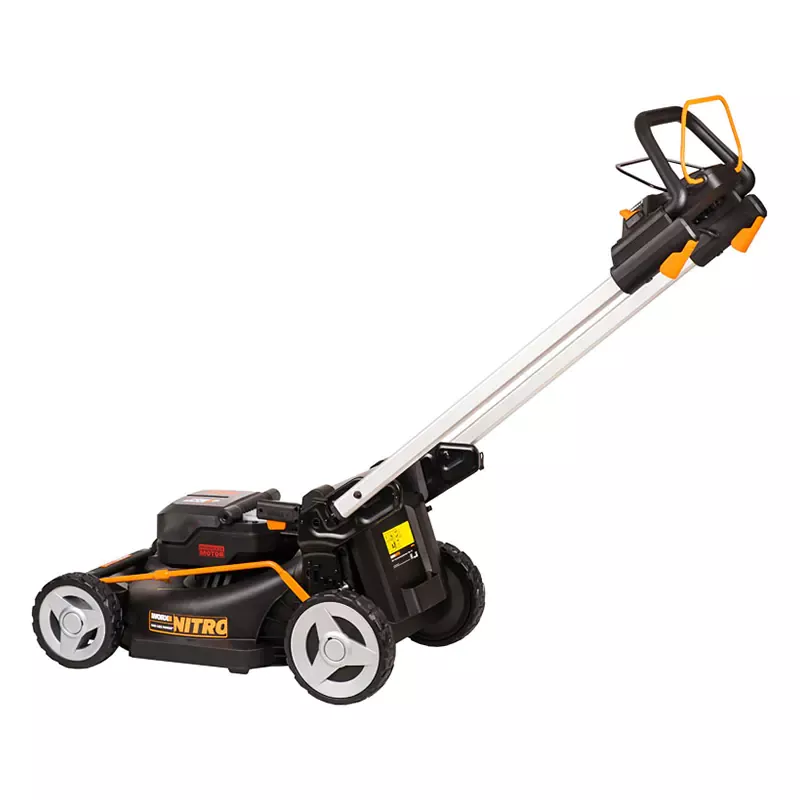 Аккумуляторная газонокосилка WORX WG749E — самоходная модель с функцией мульчирования и травосборником емкостью 55 литров. Машина отличается высокой производительностью благодаря ширине скашивания 46 см и мощным аккумуляторам. На одном заряде можно обработать участок площадью до 5 соток. Газонокосилка получает питание от двух Li-Ion 20-вольтовых аккумуляторов емкостью 4 Ач, которые включены в комплект поставки и подходят к другим беспроводным инструментам производителя.