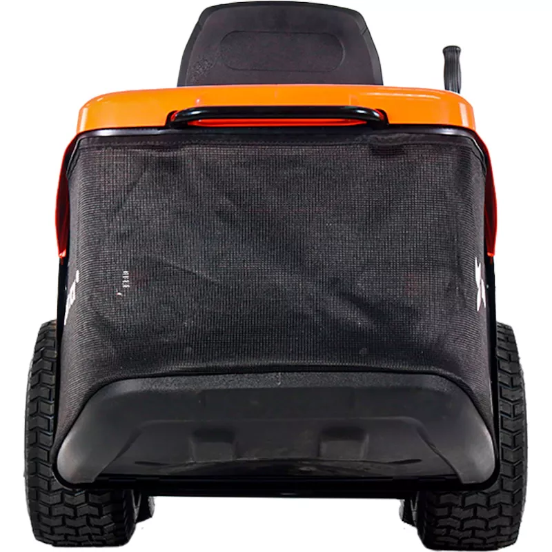 Вместительный 245-литровый травосборник облегчает сбор скошенной травы. Механизм мульчирования измельчает отходы для выброса в качестве удобрения. Движение производится при помощи крупных проходимых колес с протектором. Агрегат обеспечивает быстрый уход за территорией максимальной площадью 5000 м2. Способен работать в переднем и заднем направлении. Оператор размещается в удобном кресле с рулевым колесом и панелью управления.