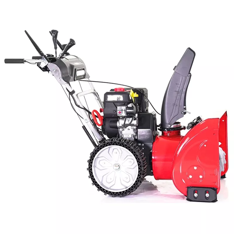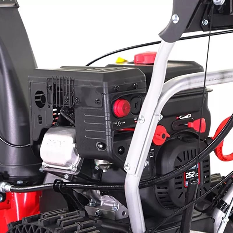 Бензиновый снегоуборщик с приводом на колеса имеет шесть передних передач и две скорости заднего хода. Вам достаточно выбрать удобный темп работы в соответствии с толщиной и плотностью снежного покрова и задавать направление движения при помощи рукояток.