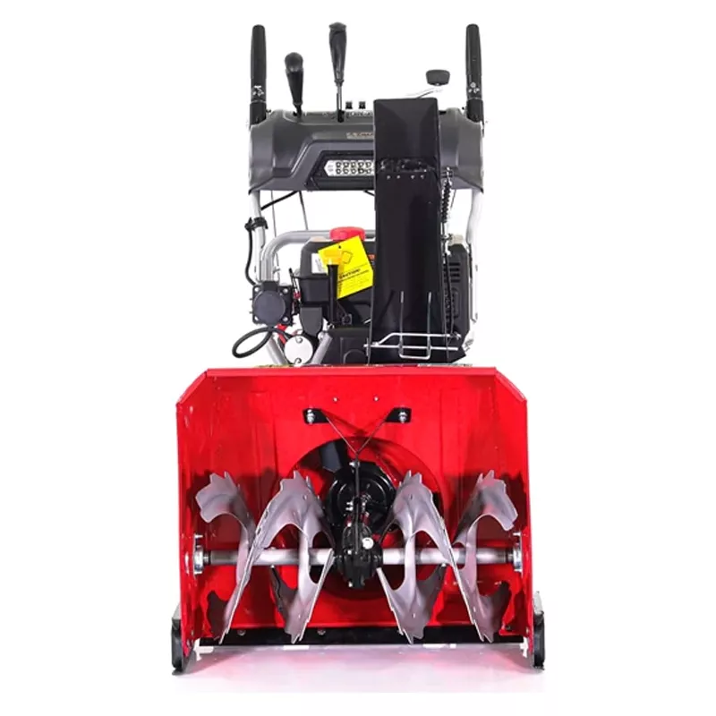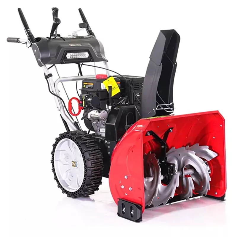 Самоходный бензиновый снегоуборщик ZimAni ST24DLE мощностью 8 л.с. расчищает дорожки шириной 62 см за один подход и отбрасывает снег на расстояние до 10 м. Для комфортной работы предусмотрены светодиодная фара и подогрев рукояток.