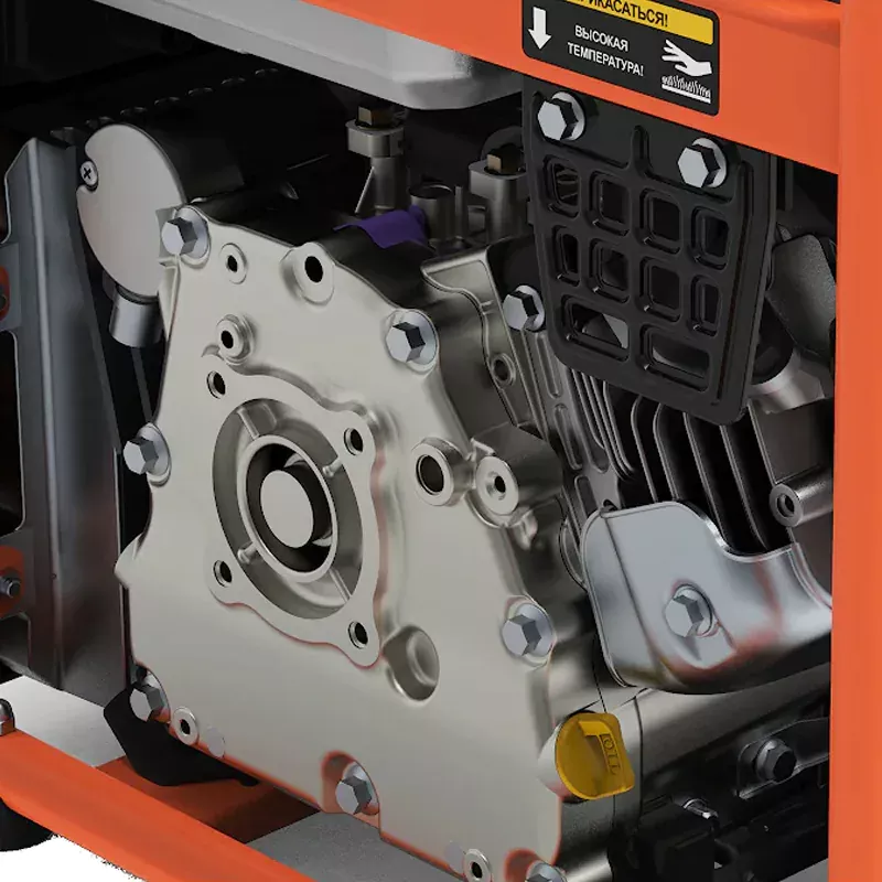 Бензиновый генератор оснащен фирменным 4-хтактным двигателем Zongshen GB225 мощностью 3,8 кВт. Для запуска используется ручной стартер. Прочная металлическая рама упрощает погрузку и перевозку устройства. Открытая сборка обеспечивает быстрый доступ для технического обслуживания узлов агрегата. Розетки защищены от попадания влаги и пыли специальными крышками.