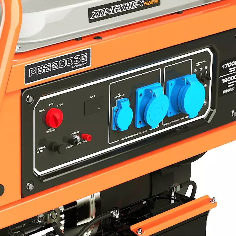 Бензиновый генератор Zongshen PB 22003 E – профессиональная модель для снабжения электричеством строительной площадки, магазина или загородного дома. Устройство позволяет питать как трехфазное, так и однофазное оборудование, что значительно расширяет сферу его применения.